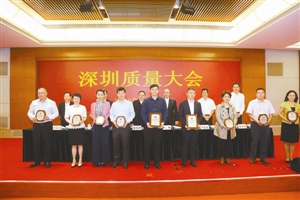 昨天大会为2015年度12家市长质量奖获奖单位颁奖,包括市长质量奖特别贡献奖(2家):华为投资控股有限公司、大亚湾核电运营管理有限责任公司;市长质量奖(大奖)(1家):中国平安保险(集团)股份有限公司;市长质量奖提名奖(2家):深圳市大疆创新科技有限公司、深圳市天健(集团)股份有限公司;市长质量奖鼓励奖单位(7家):深圳图书馆、深圳市贝特瑞新能源材料股份有限公司、安莉芳(中国)服装有限公司、深圳市创新投资集团有限公司、深圳世界之窗有限公司、深圳市怡亚通供应链股份有限公司、美盈森集团股份有限公司。