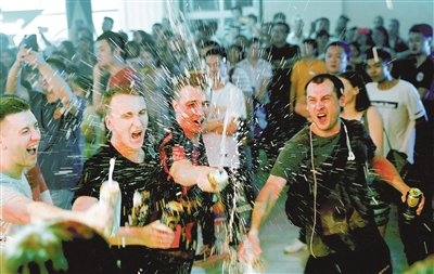 畅饮啤酒。